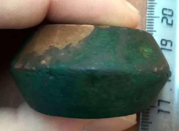Кистень круглый уплощенный с обломанным ухом и изображением морды льва?, тип 3А по Кирпичникову, 12-13 вв. (фото 3)