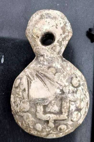 Кистень круглый уплощенный с геральдическими знаками, свинец, тип 3А по Кирпичникову, 12-13 вв. (фото 2)
