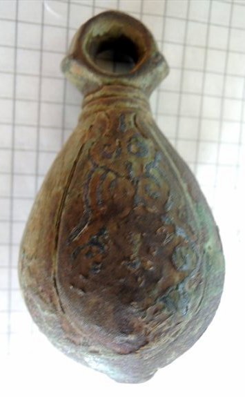 Кистень грушевидный уплощенный с черневым орнаментом, тип 3 по Кирпичникову, вторая половина 12-13 вв.