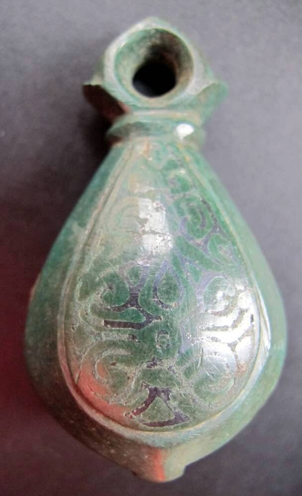 Кистень грушевидный уплощенный с черневым орнаментом, тип 3 по Кирпичникову, вторая половина 12-13 вв.