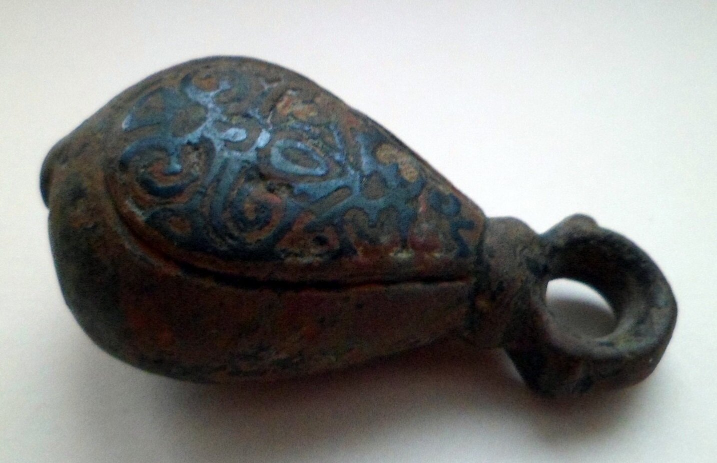 Кистень грушевидный уплощенный с черневым орнаментом, тип 3 по Кирпичникову, вторая половина 12-13 вв. Волынская обл.