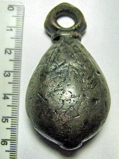 Кистень грушевидный уплощенный с черневым орнаментом, тип 3 по Кирпичникову, вторая половина 12-13 вв. (фото 1)
