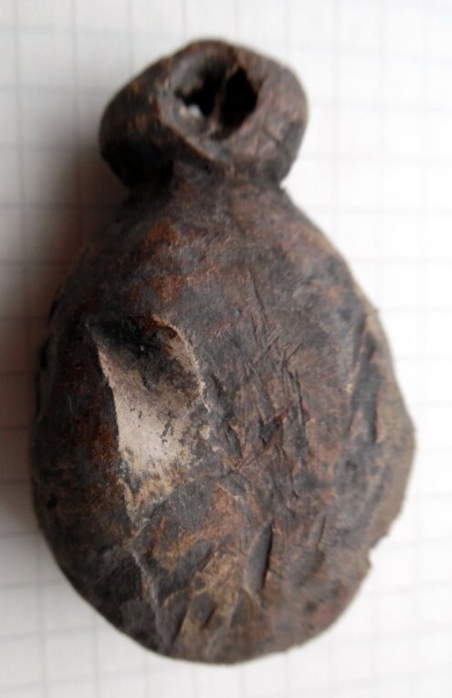 Кистень грушевидный уплощенный с графити, свинец, тип 3А по Кирпичникову, вторая половина 12-13 вв. (фото 2)