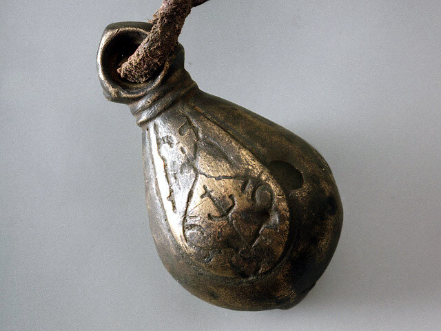 Кистень грушевидный уплощенный с черневым орнаментом, тип 3 по Кирпичникову, вторая половина 12 - 13 вв.