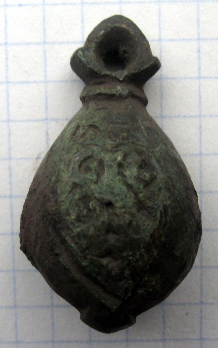 Кистень грушевидный уплощенный с черневым орнаментом, тип 3 по Кирпичникову, вторая половина 12-13 вв. (фото 2)
