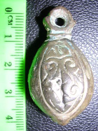 Кистень грушевидный уплощенный с черневым орнаментом, тип 3 по Кирпичникову, вторая половина 12-13 вв. (фото 1)