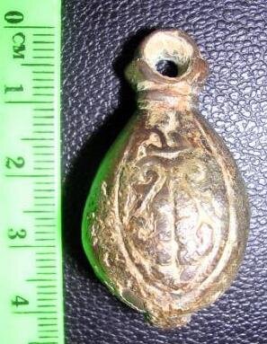 Кистень грушевидный уплощенный с черневым орнаментом, тип 3 по Кирпичникову, вторая половина 12-13 вв. (фото 2)