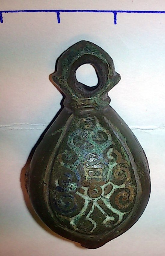 Кистень грушевидный уплощенный с черневым орнаментом, тип 3 по Кирпичникову, вторая половина 12-13 вв. Киевская обл. левый берег Днепра (фото 2)