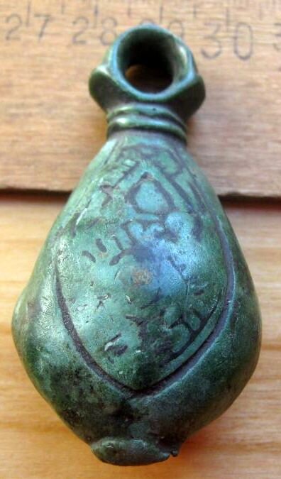 Кистень грушевидный уплощенный с черневым орнаментом, тип 3 по Кирпичникову, вторая половина 12-13 вв. (фото 1)