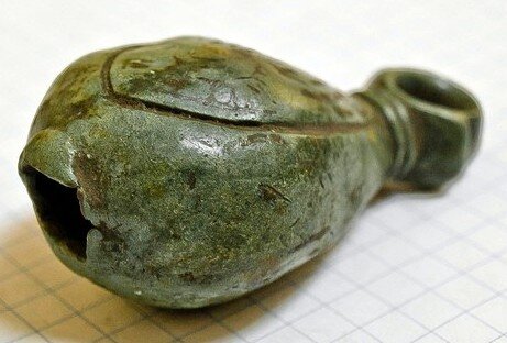 Кистень грушевидный уплощенный с черневым орнаментом, 47,96 гр., тип 3 по Кирпичникову, вторая половина 12-13 вв. (фото 3)