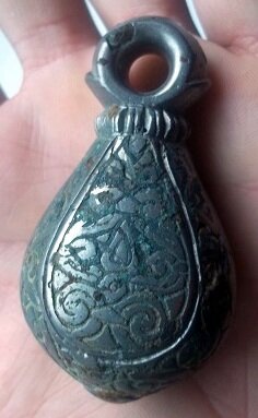 Кистень грушевидный уплощенный с черневым орнаментом, тип 3 по Кирпичникову, вторая половина 12-13 вв. (фото 2)