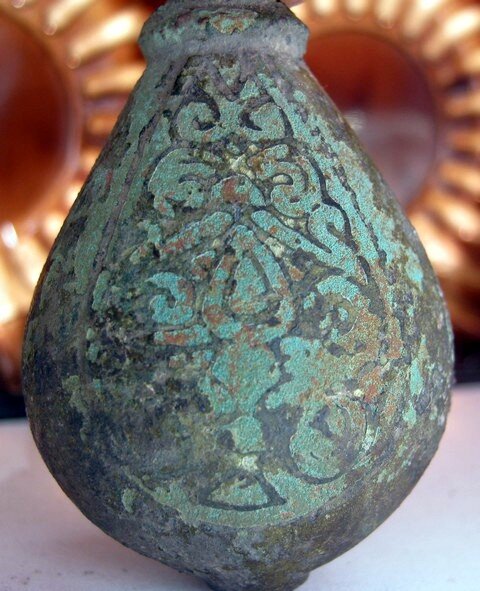 Кистень грушевидный уплощенный с черневым орнаментом, 83 гр., тип 3 по Кирпичникову, вторая половина 12-13 вв. (фото 1)