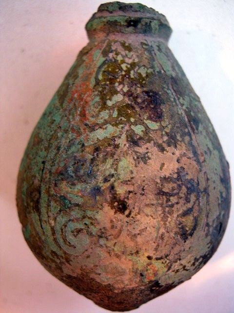 Кистень грушевидный уплощенный с черневым орнаментом, 83 гр., тип 3 по Кирпичникову, вторая половина 12-13 вв. (фото 2)