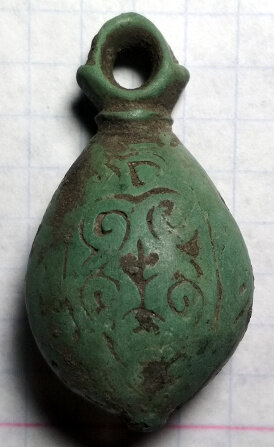 Кистень грушевидный уплощенный с черневым орнаментом, 19,9 гр., тип 3 по Кирпичникову, вторая половина 12-13 вв. (фото 1)