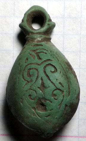 Кистень грушевидный уплощенный с черневым орнаментом, 19,9 гр., тип 3 по Кирпичникову, вторая половина 12-13 вв. (фото 2)
