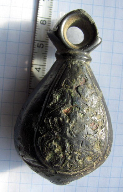 Кистень грушевидный уплощенный с черневым орнаментом, 104 гр., тип 3 по Кирпичникову, вторая половина 12-13 вв. Киевская обл. берег р. Рось (фото 2)