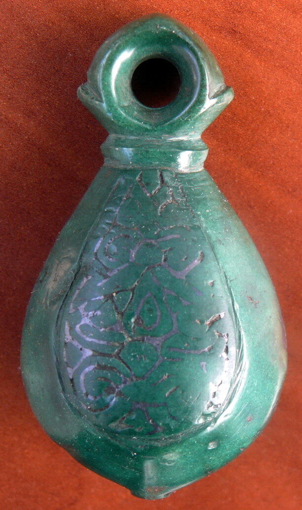 Кистень грушевидный уплощенный с черневым орнаментом, тип 3 по Кирпичникову, вторая половина 12-13 вв. (фото 2)