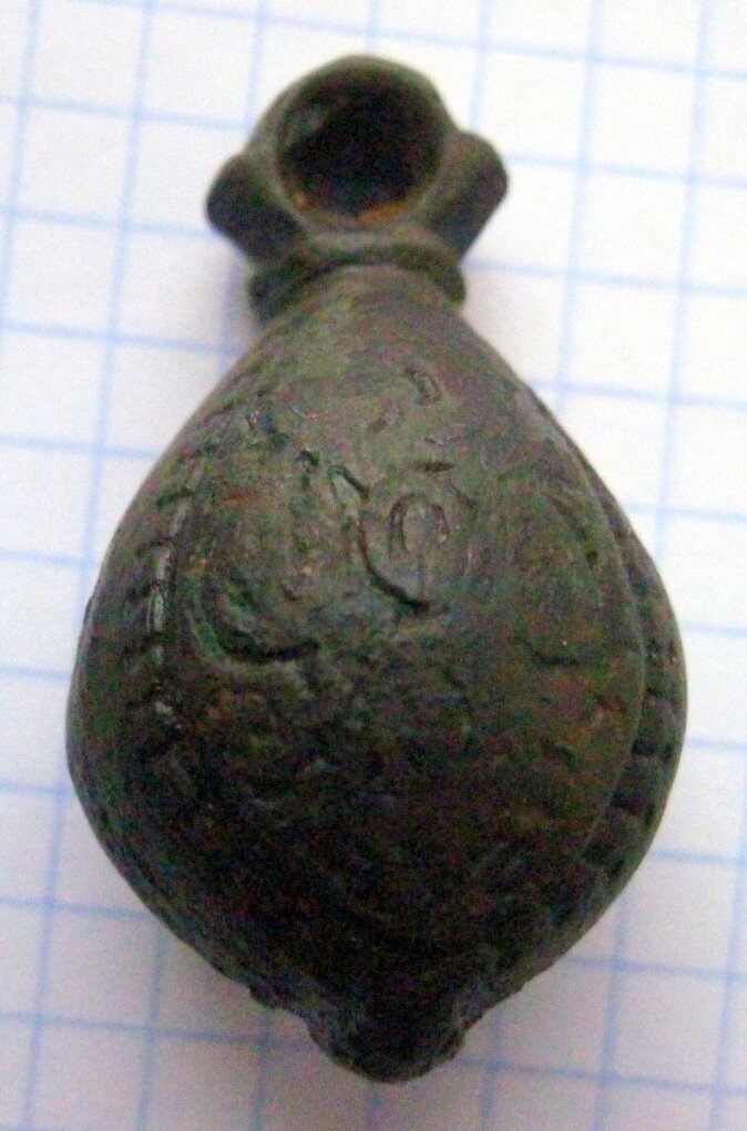 Кистень грушевидный уплощенный с черневым орнаментом, 36 гр., тип 3 по Кирпичникову, вторая половина 12-13 вв. (фото 2)