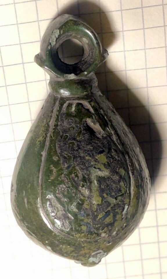 Кистень грушевидный уплощенный с черневым орнаментом, 81,6 гр., тип 3 по Кирпичникову, вторая половина 12-13 вв. (фото 1)