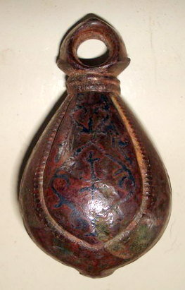 Кистень грушевидный уплощенный с черневым орнаментом, тип 3 по Кирпичникову, вторая половина 12 - 13 вв.