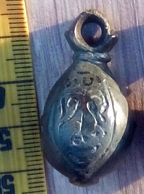 Кистень грушевидный уплощенный с черненым орнаментом, тип 3 по Кирпичникову, вторая половина 12-13 вв.