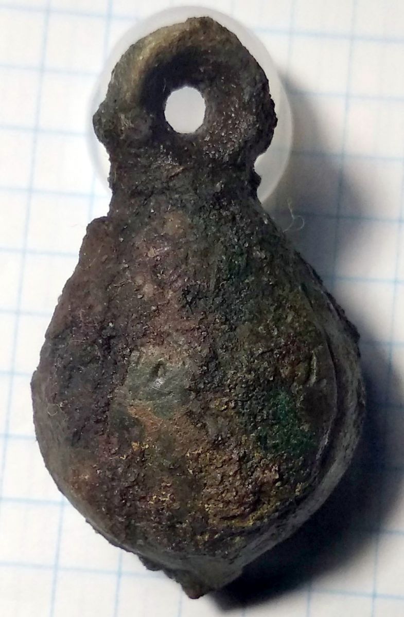 Кистень грушевидный уплощенный с черненым орнаментом, тип 3 по Кирпичникову, вторая половина 12-13 вв. (фото 1)