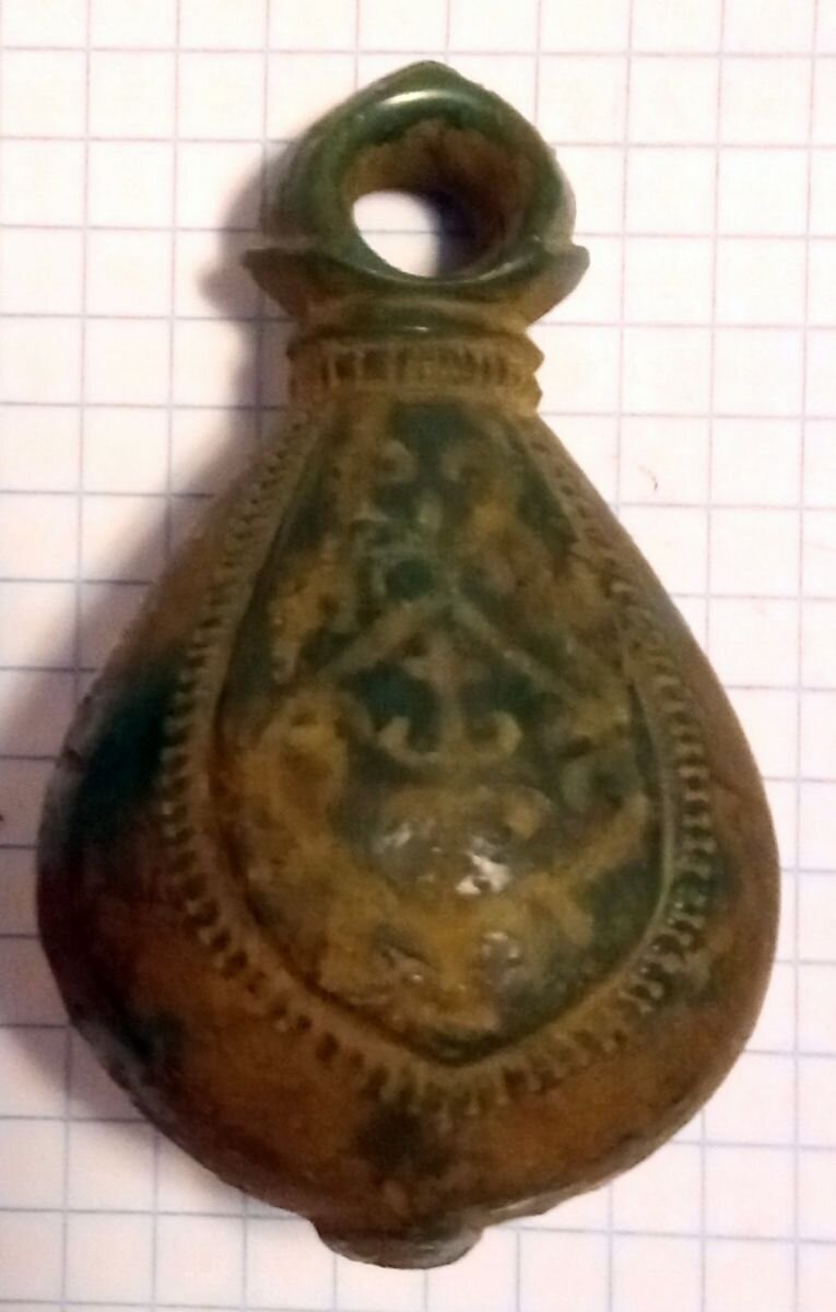 Кистень грушевидный уплощенный с черненым орнаментом, 128 гр., тип 3 по Кирпичникову, вторая половина 12-13 вв.