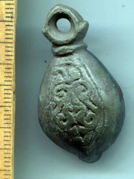 Кистень грушевидный уплощенный с черненым орнаментом, 21,58 гр., тип 3 по Кирпичникову, вторая половина 12-13 вв. Черниговская обл. (фото 2)