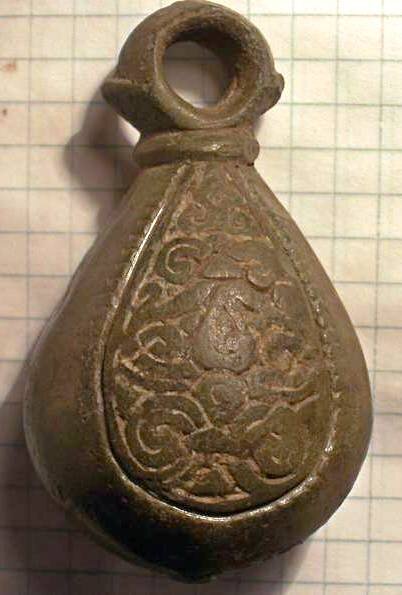 Кистень грушевидный уплощенный с черненым орнаментом, тип 3 по Кирпичникову, вторая половина 12-13 вв. Полтавская обл. (фото 1)