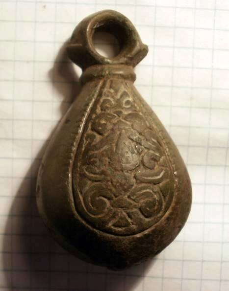 Кистень грушевидный уплощенный с черненым орнаментом, тип 3 по Кирпичникову, вторая половина 12-13 вв. Полтавская обл. (фото 2)