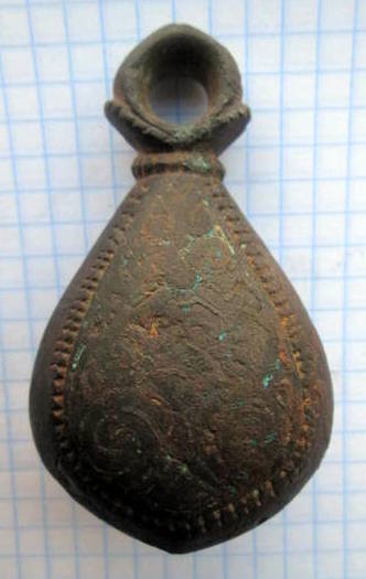 Кистень грушевидный уплощенный с черненым орнаментом, тип 3 по Кирпичникову, вторая половина 12-13 вв. Черниговская обл. (фото 2)