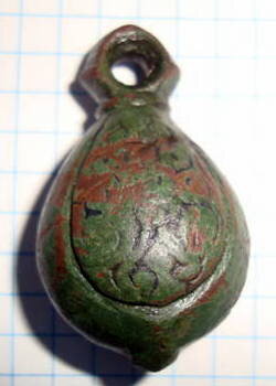 Кистень грушевидный уплощенный с черненым орнаментом, тип 3 по Кирпичникову, вторая половина 12-13 вв. Черниговская обл. (фото 1)