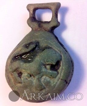 Кистень круглый уплощенный с изображением льва (?) с двух сторон, тип 3А по Кирпичникову, 12-13 вв. (фото 2)