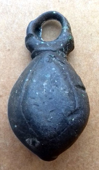 Кистень грушевидный уплощенный с черневым орнаментом, 75 гр., тип 3 по Кирпичникову, вторая половина 12 - 13 вв. (фото 2)