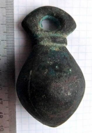 Кистень грушевидный уплощенный с графити в виде креста, 326,8 гр., тип 3 по Кирпичникову, вторая половина 12 - 13 вв. Львовская обл. (фото 2)