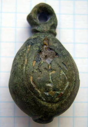 Кистень грушевидный уплощенный с черневым орнаментом, тип 3 по Кирпичникову, вторая половина 12 - 13 вв. (фото 1)