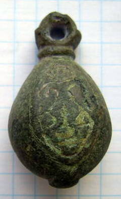 Кистень грушевидный уплощенный с черневым орнаментом, тип 3 по Кирпичникову, вторая половина 12 - 13 вв. (фото 2)
