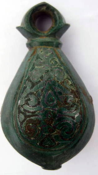Кистень грушевидный уплощенный с черневым орнаментом,103,5 гр., тип 3 по Кирпичникову, вторая половина 12 - 13 вв. Киевская обл. (фото 1)