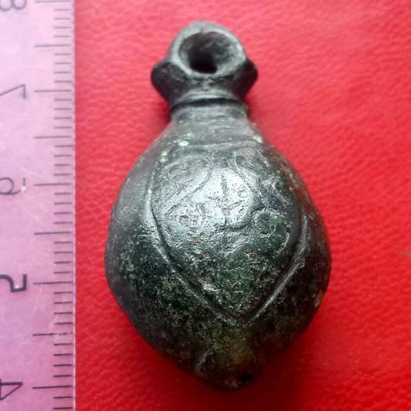 Кистень грушевидный уплощенный с черневым орнаментом, тип 3 по Кирпичникову, вторая половина 12 - 13 вв. Ровенская обл. (фото 1)