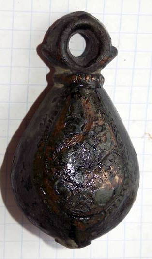 Кистень грушевидный уплощенный с черневым орнаментом, тип 3 по Кирпичникову, вторая половина 12 - 13 вв. Хмельницкая обл. (фото 1)