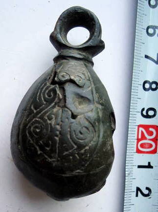 Кистень грушевидный уплощенный с черневым орнаментом, тип 3 по Кирпичникову, вторая половина 12 - 13 вв.