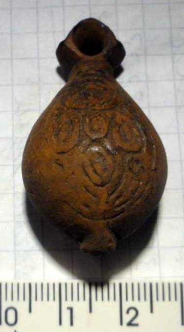 Кистень грушевидный уплощенный с черневым орнаментом, 30 гр., тип 3 по Кирпичникову, вторая половина 12 - 13 вв. Львовская обл.