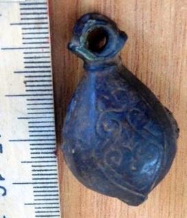 Кистень грушевидный уплощенный с черневым орнаментом, 27,29 гр., тип 3 по Кирпичникову, вторая половина 12 - 13 вв. Ровенская обл.