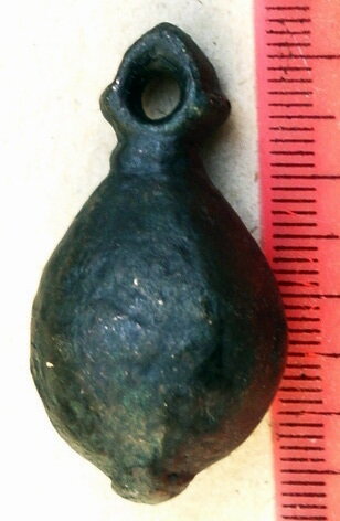 Кистень грушевидный уплощенный с черневым орнаментом, тип 3 по Кирпичникову, вторая половина 12 - 13 вв. Житомирская обл. (фото 2)