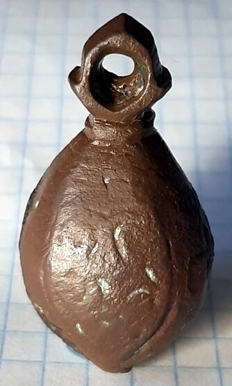 Кистень грушевидный уплощенный с черневым орнаментом, 28,9 гр., тип 3 по Кирпичникову, вторая половина 12 - 13 вв. Киевская обл. (фото 1)