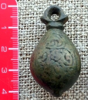 Кистень грушевидный уплощенный с черневым орнаментом, тип 3 по Кирпичникову, вторая половина 12 - 13 вв. (фото 2)