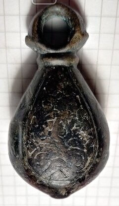Кистень грушевидный уплощенный с черневым орнаментом, 110,58 гр., тип 3 по Кирпичникову, вторая половина 12 - 13 вв. (фото 2)