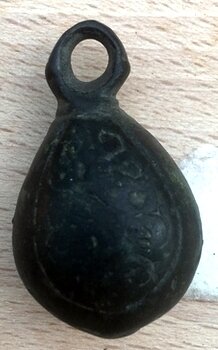 Кистень грушевидный уплощенный с черневым орнаментом, тип 3 по Кирпичникову, вторая половина 12 - 13 вв.