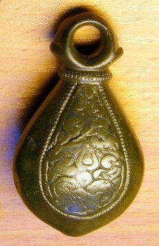 Кистень грушевидный уплощенный с черневым орнаментом, тип 3 по Кирпичникову, вторая половина 12 - 13 вв. (фото 1)