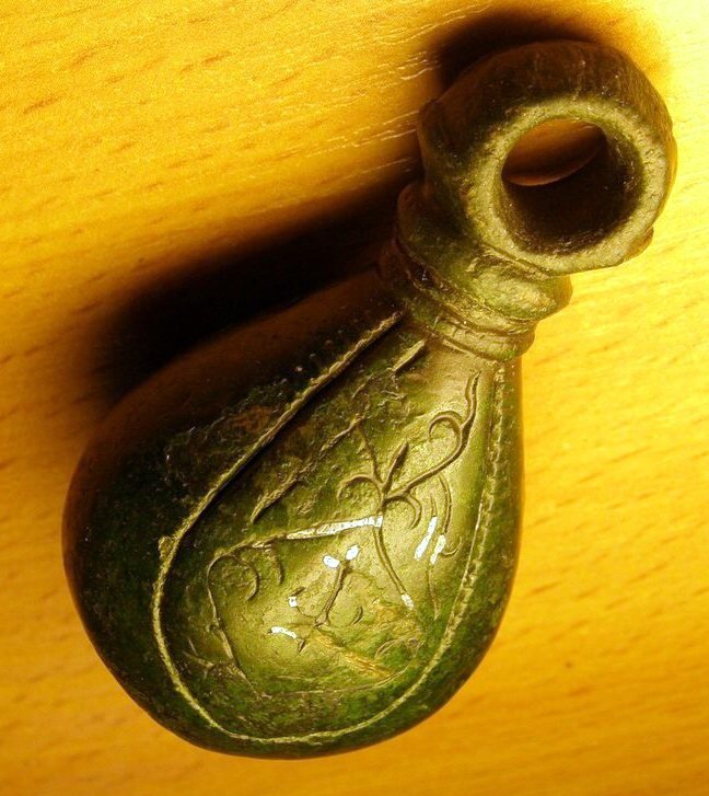 Кистень грушевидный уплощенный с черневым орнаментом, тип 3 по Кирпичникову, вторая половина 12 - 13 вв. (фото 2)